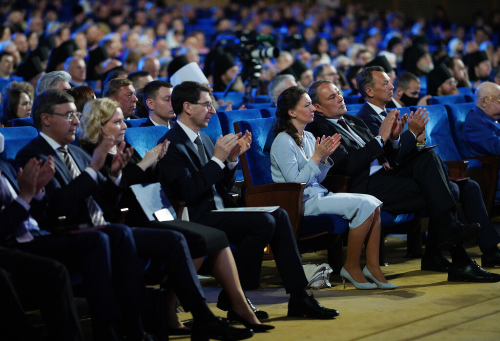 Хотел бы отметить важность нравственного воспитания в современном мире. Наш Всероссийский конкурс «За нравственный подвиг учителя», ежегодно проводимый во всех регионах России при поддержке полномочных представителей Президента в федеральных округах, направлен именно на то, о чем я только что сказал. Пользуясь случаем, сердечно поздравляю победителей и лауреатов конкурса и благодарю всех его организаторов.