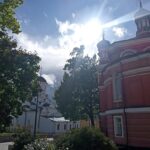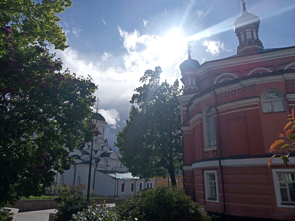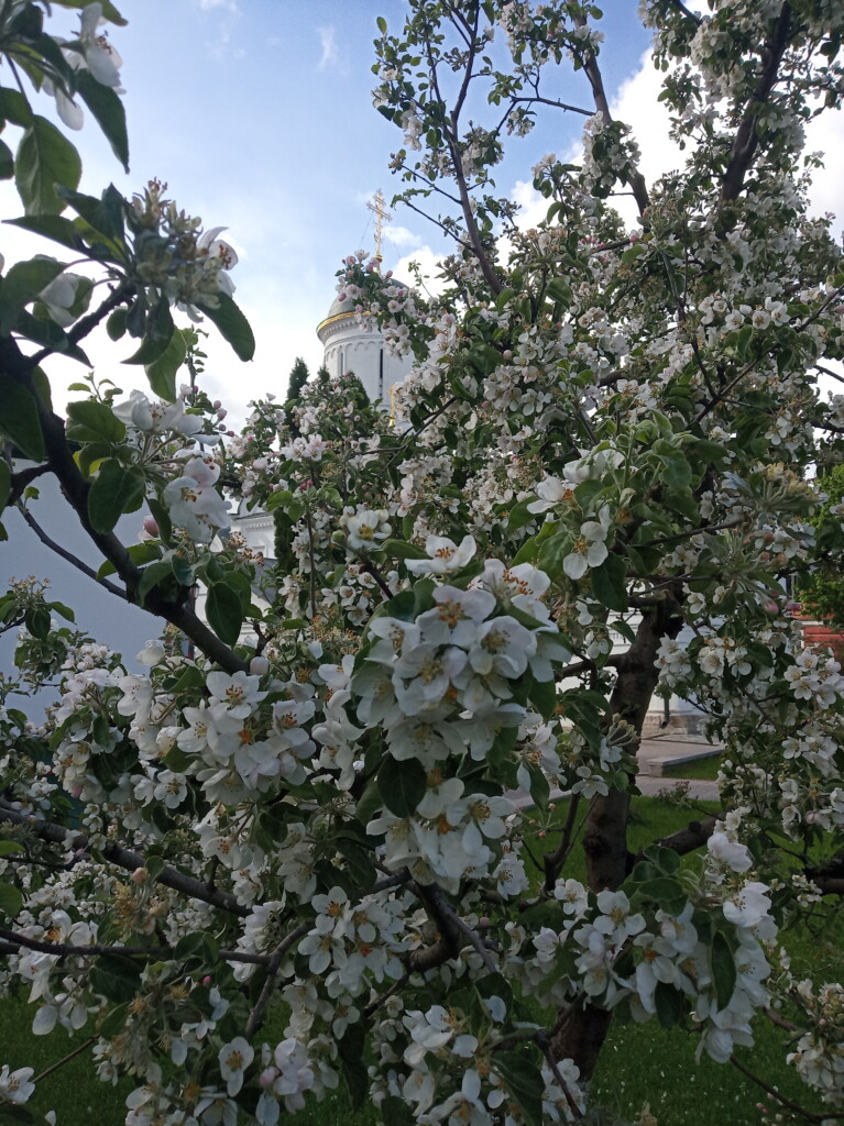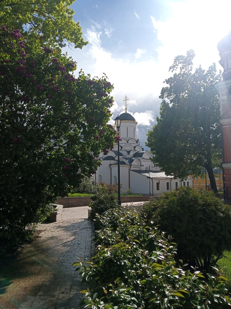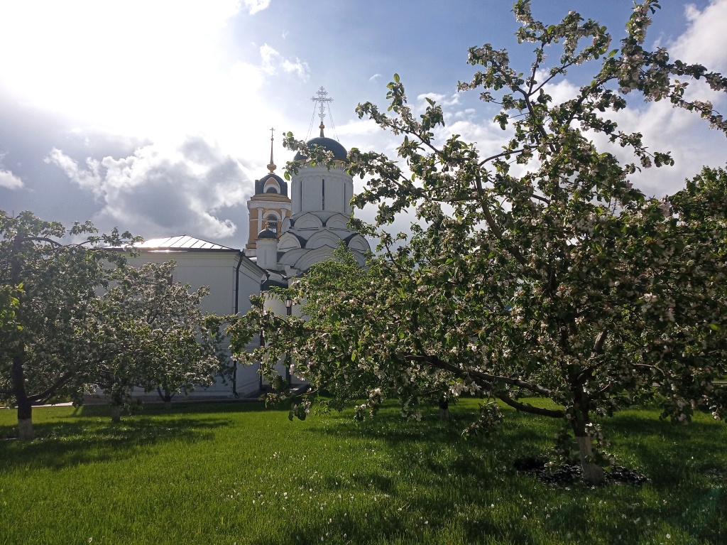 Завершается весенний месяц май, отцветают яблони, зацветает сирень... В этом месяце обитель всегда красива. Даже в дождливые дни бывают моменты, когда небо проясняется, и весеннее солнце своими лучами пронизывает ветви деревьев, озаряя храмы и сад. Сегодня прекрасный майский день. После дождя благоухают цветы и растения. И все творение воздает хвалу Богу, все в монастыре настраивает на молитву...