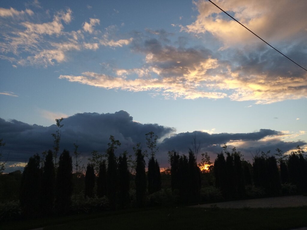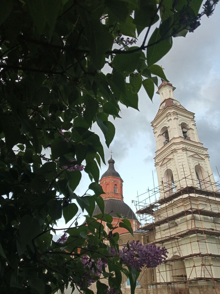 В этот июньский вечер облака над подворьем, озаренные светом заходящего солнца, молодая листва деревьев, зацветающая сирень, первые летние цветы - все напоминает о премудрости и благости Творца всего. И от творений земных мысленный взор обращаются к Небу духовному...