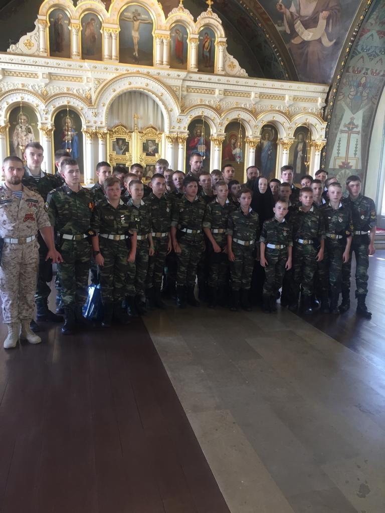 Наши гости помолились за монастырским богослужением, а затем благочинная монастыря провела для них экскурсию по храмам и территории обители, рассказав об историческом прошлом монастыря, его основательнице схимонахине Марфе (в миру княгине Марии Ивановне Серпуховской), о святынях и жизни обители сегодня. Для наших паломников рассказ об обители был интересным, они узнали много нового и еще раз убедились в том, что жизнь и пример князя Владимира Андреевича Храброго остались в памяти народа, и что добродетели князя и его близких находили отражение в таких прекрасных духовных памятниках как наш монастырь. Нас порадовало, что ребят интересуют вопросы духовной жизни, что они особенно обратили внимание на икону Страшного Суда и спрашивали именно о том, что полезно для души. Их поступки и поведение свидетельствуют об искренней вере и благочестии, любви к Церкви и родной земле, беспрекословном подчинении старшим, воинской дисциплине и мужестве. Они показали себя достойными последователями князя-героя, имя которого для них священно.