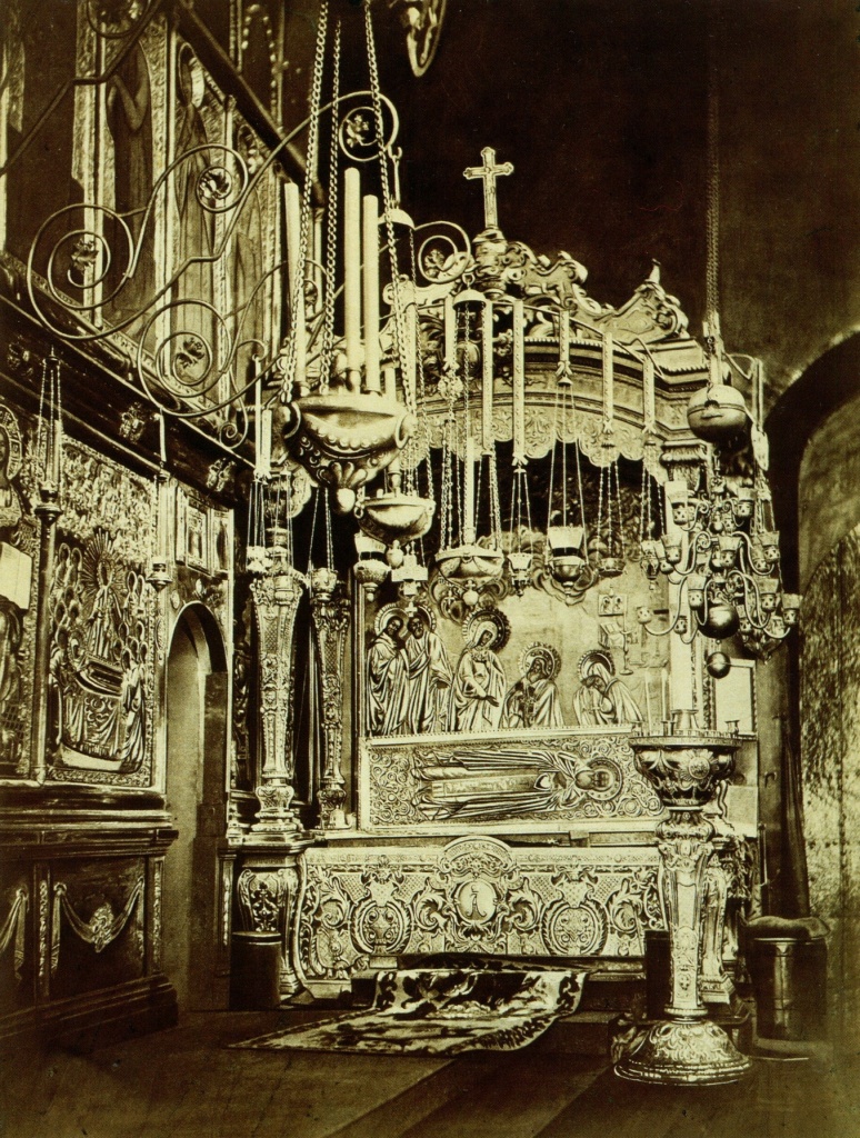 [4] В 1737-м г. Императрица Анна Иоанновна устроила над ракой великолепную серебряную сень на четырех столбах. На ее изготовление ушло 25 пудов серебра.
