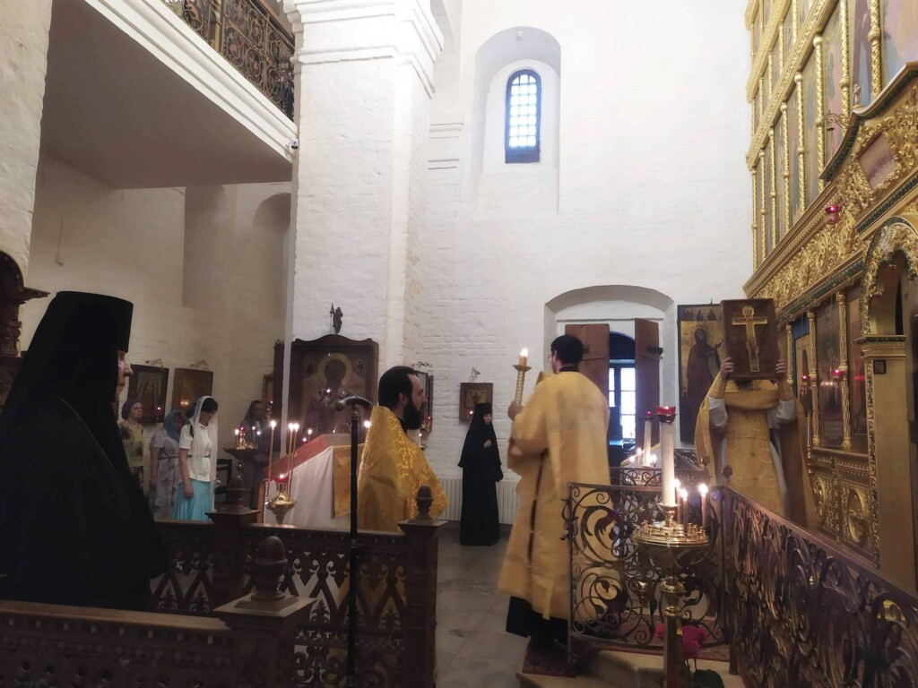 Вечером 13 августа, в Неделю 9-ю по Пятидесятнице и в канун праздника Происхождения (изнесения) честных древ Животворящего Креста Господня, в нашей обители состоялось всенощное бдение, которое совершило монастырское духовенство. В храме молились настоятельница нашего монастыря игумения Викторина (Перминова) с сестрами и наши прихожане.
