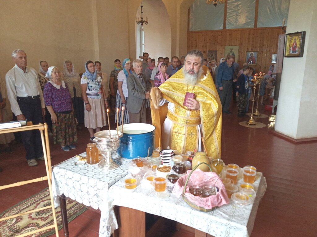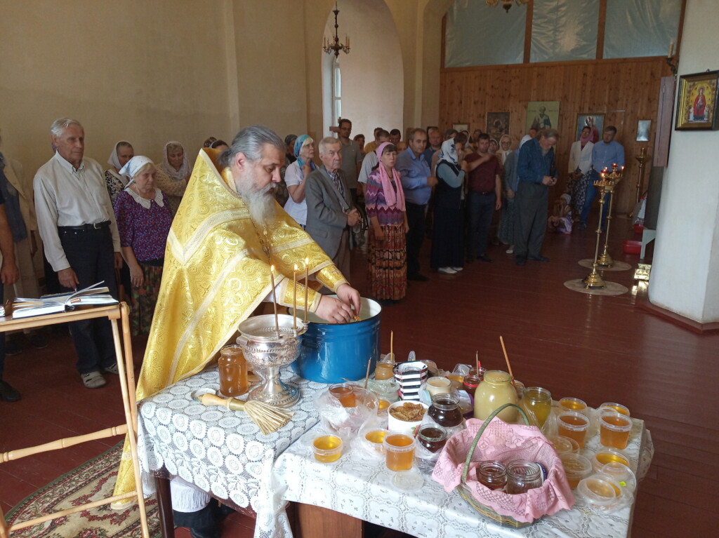 14 августа 2022 года, в Неделю 9-ю по Пятидесятнице, в праздник Происхождения (изнесения) честных древ Животворящего Креста Господня и день памяти святых мучеников Маккавеев, на подворье нашей обители состоялось воскресное богослужение, которое совершил священнослужитель монастыря протоиерей Серафим Хайруллин. По завершении Божественной Литургии состоялся водосвятный молебен с освящением меда нового урожая.