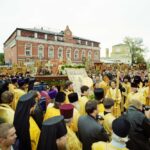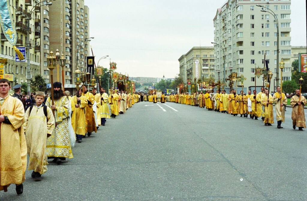 В торжественном шествии приняли участие архиереи, духовенство и почти десять тысяч верующих.