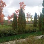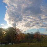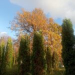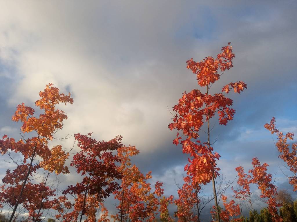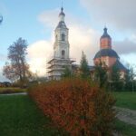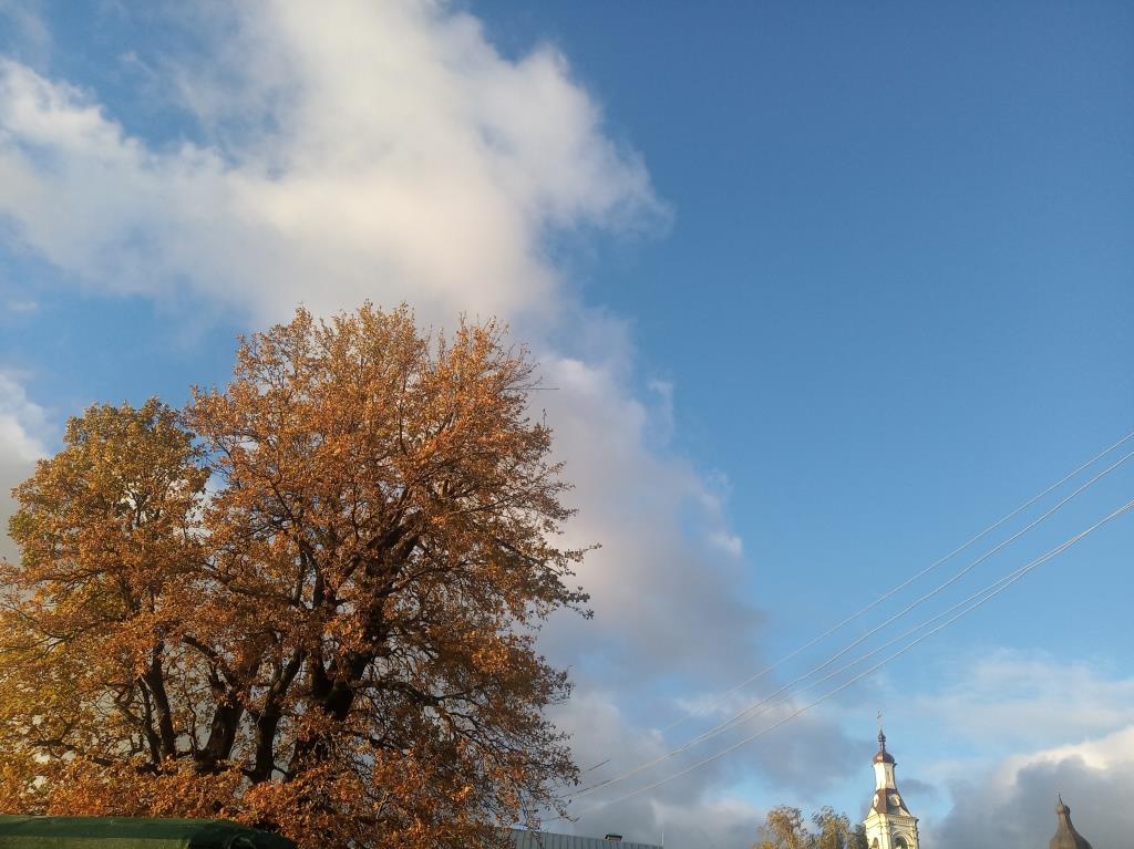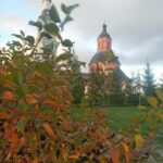 В начале октября, несмотря на дождливую погоду, иногда проясняется небо, из-за осенних туч показывается солнце и озаряет яркие краски золотой осени. Разноцветная листва, живописные картины окрестностей подворья, голубизна неба, последние осенние цветы... Чувствуется, что вместе с Церковью, совершает Отдание праздника Воздвижения и вся природа - эта книга Божия...