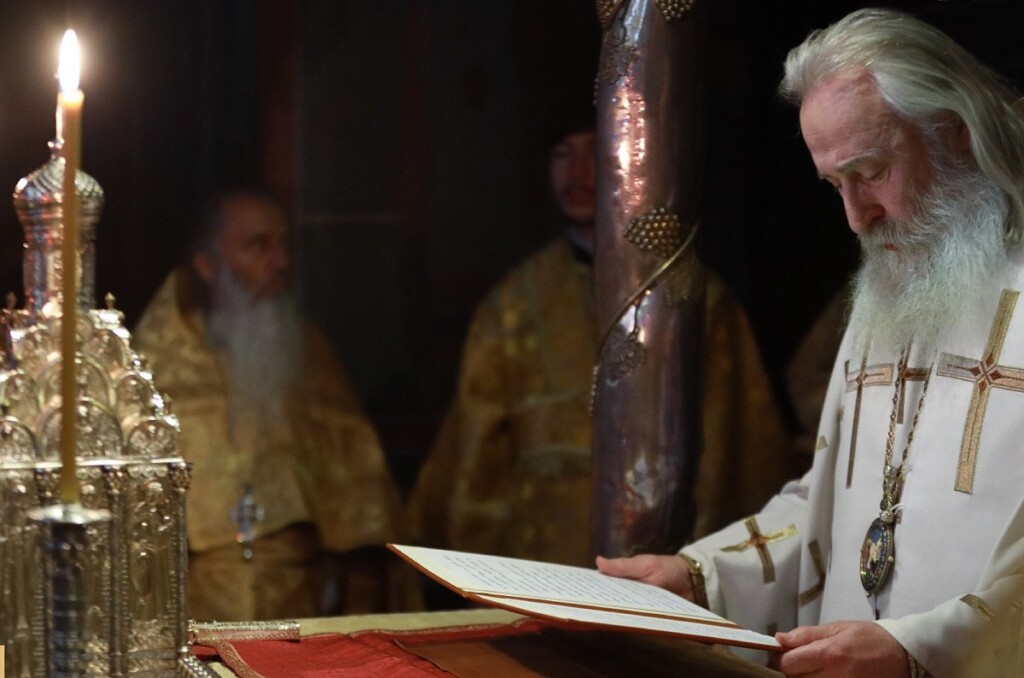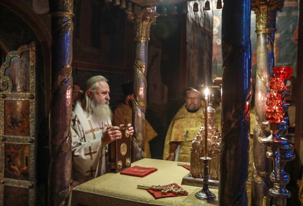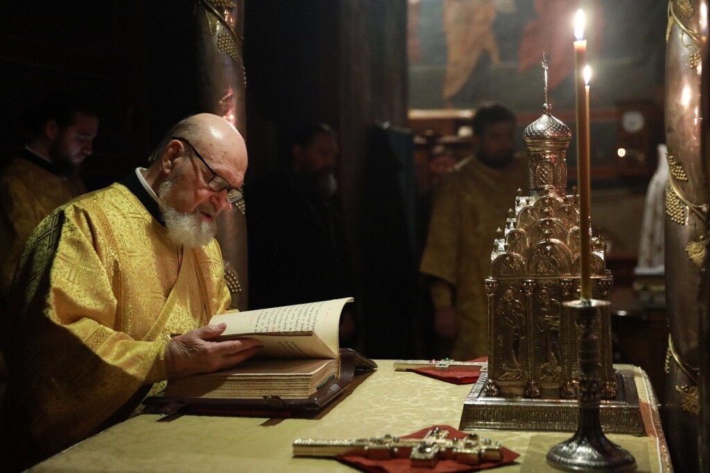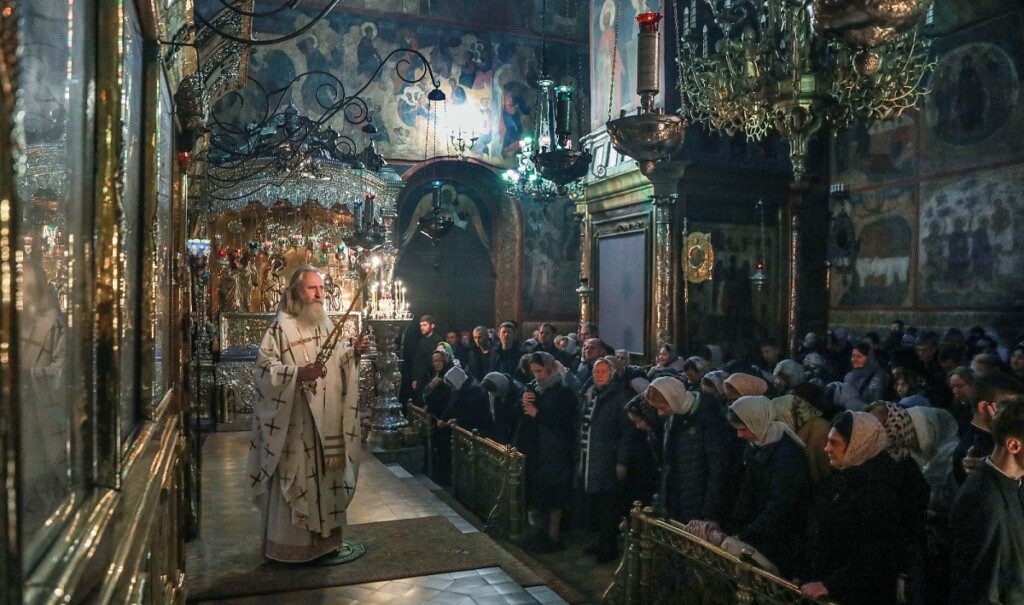Богослужебные песнопения исполнил знаменный хор Лавры.