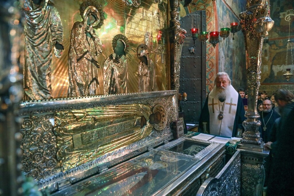 В крипте Успенского собора владыка Феогност совершил заупокойную литию у гробниц почивших Предстоятелей Русской Православной Церкви Святейшего Патриарха Алексия I (†1970) и Святейшего Патриарха Пимена (†1990).