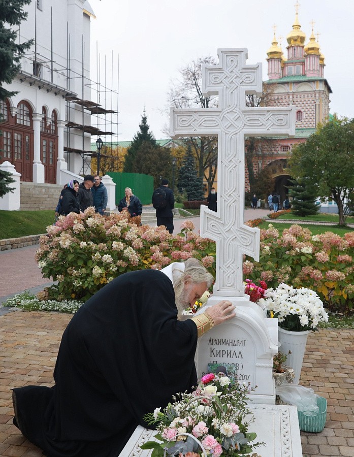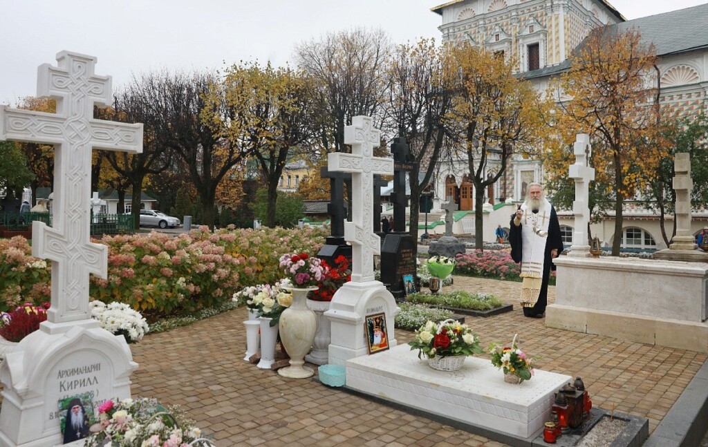 Затем была отслужена лития у могил лаврских старцев погребенных на территории Троице-Сергиевой лавры за алтарем церкви Святого Духа.