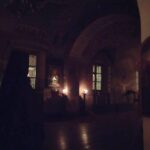 В приделе Сошествия Святого Духа, где проходило богослужение, у северного входа в главный собор погребена основательница обители схимонахиня Марфа (княгиня Мария Серпуховская), и поэтому ночные заупокойные службы чаще всего совершаются там.