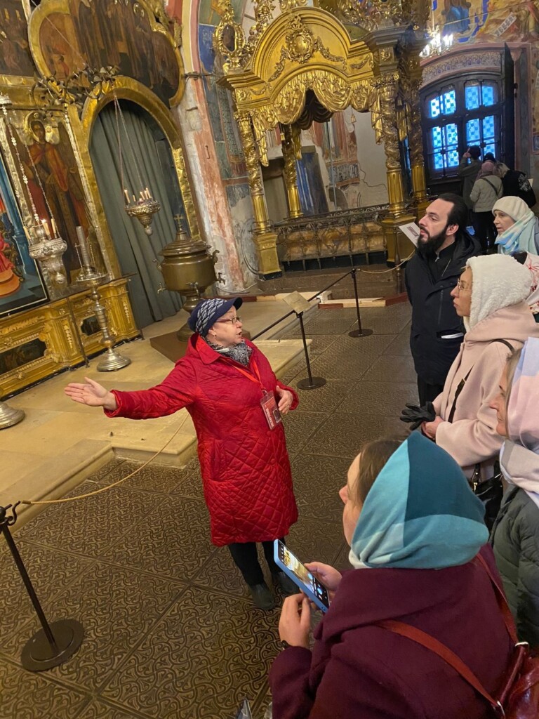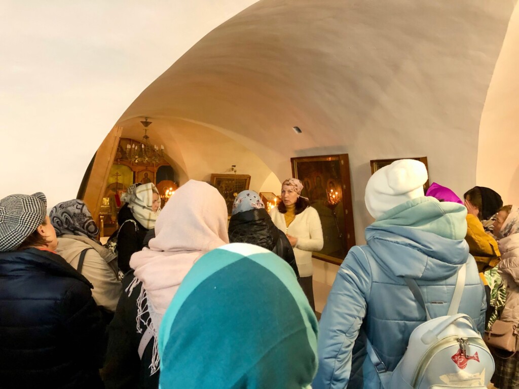 В подклете-усыпальнице Покровского собора мы услышали подробный рассказ о монастыре, о жизни преподобной Софии и других представительниц княжеских и боярских родов, окончивших свой земной путь и погребенных в суздальской обители. Также мы увидели место, где была погребена преподобная София, после чего переместились в зимний храм Зачатия праведной Анной Пресвятой Богородицы, где поклонились мощам преподобной.