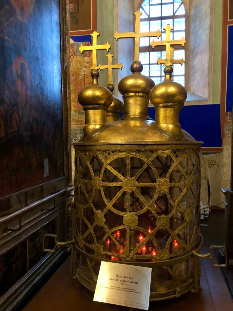 Уже при входе в Рождественский собор, который был задуман как главный городской храм и княжеская усыпальница, поражают своим великолепием уникальный иконостас, созданный при митрополите Иларионе (конец XVII в.), и необычные паникадила (одно из них – со страусиным яйцом), а также громадный выносной фонарь конца XVII в., сделанный в форме храма с горящими внутри свечами.