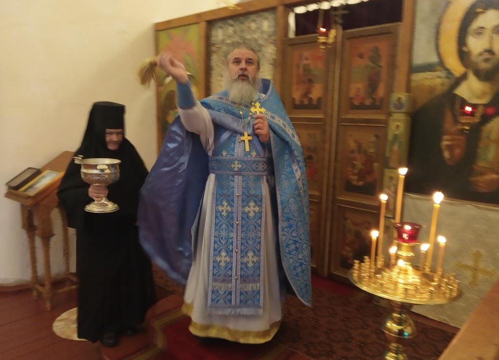 Перед Божественной Литургией, по традиции престольного праздника, был отслужен водосвятный молебен.