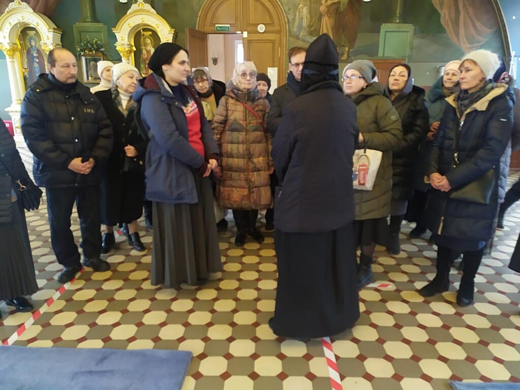 Дорогих гостей встретила благочинная монастыря, которая провела для них экскурсию, рассказала о монастыре, его историческом прошлом, храмах, святынях.