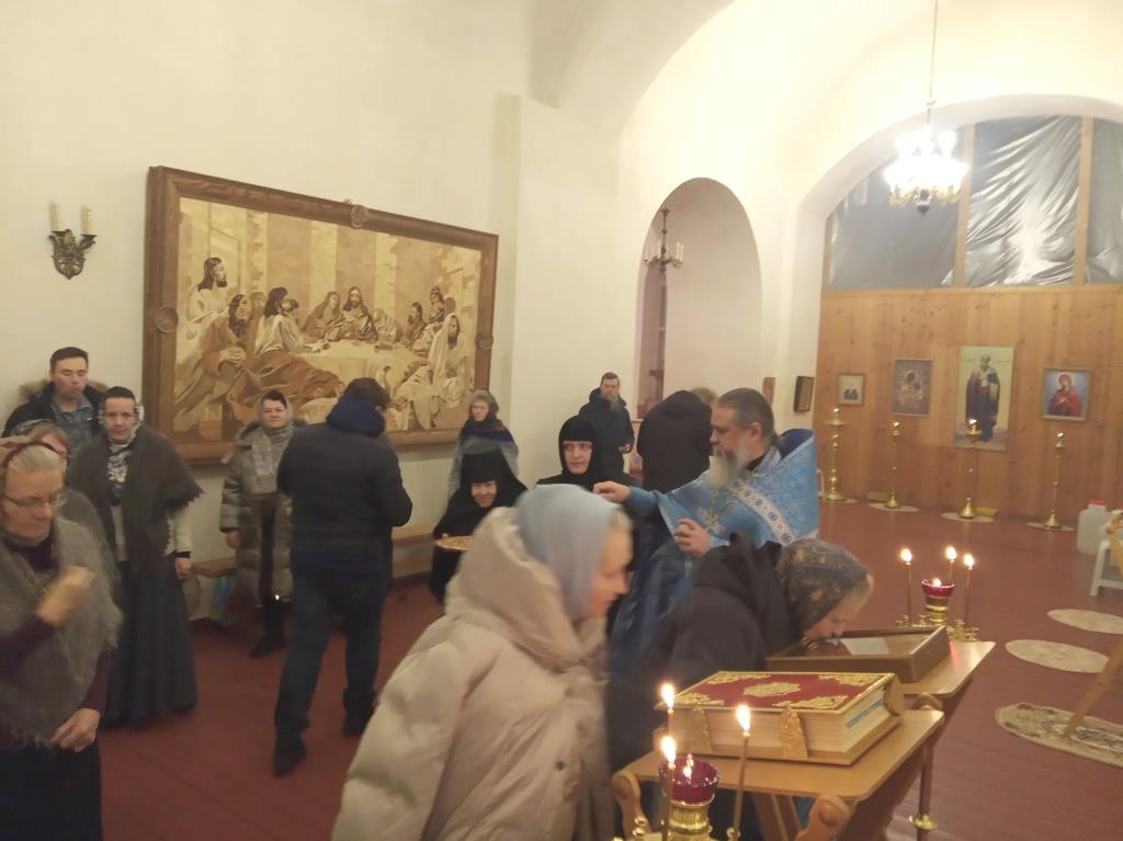По милости Божией, несмотря на холодную погоду и декабрьские сумерки, в наш сельский храм приехали постоянные прихожане, чтобы почтить Пречистую Божию Матерь и разделить с трудящимися на подворье сестрами радость праздника.
