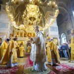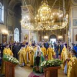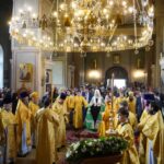 На сугубой ектении были вознесены особые прошения, Предстоятель Русской Церкви прочитал молитву о Святой Руси.
