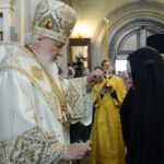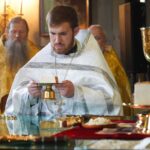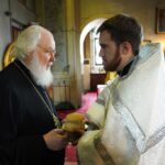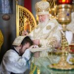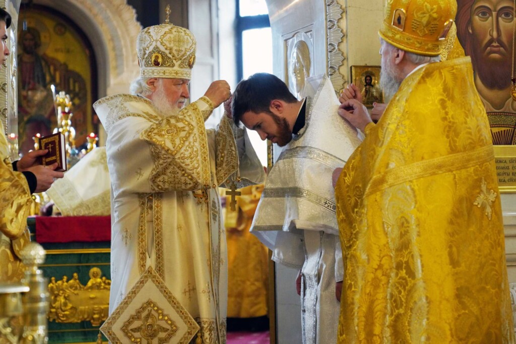 За Литургией Святейший Владыка рукоположил диакона Романа Мирова, временно служащего в храме святителя Киприана, митрополита Московского, в Чертанове г. Москвы, в сан пресвитера.