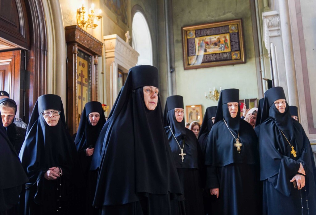 За богослужением молились настоятельница Алексеевского монастыря, руководитель Правового управления Московской Патриархии игумения Ксения (Чернега), настоятельница Зачатьевского ставропигиального женского монастыря, заместитель председателя Синодального отдела по монастырям и монашеству игумения Иулиания (Каледа), настоятельница Богородице-Рождественского ставропигиального женского монастыря игумения Викторина (Перминова), настоятельница Новодевичьего ставропигиального женского монастыря игумения Маргарита (Феоктистова), настоятельница Иоанно-Предтеченского ставропигиального женского монастыря игумения Елисавета (Никишкина), настоятельница Воскресенского Новодевичьего монастыря г. Санкт-Петербурга игумения София (Силина), насельницы Алексеевской обители.