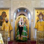В храме Всех святых Предстоятель Русской Православной Церкви совершил Божественную литургию.