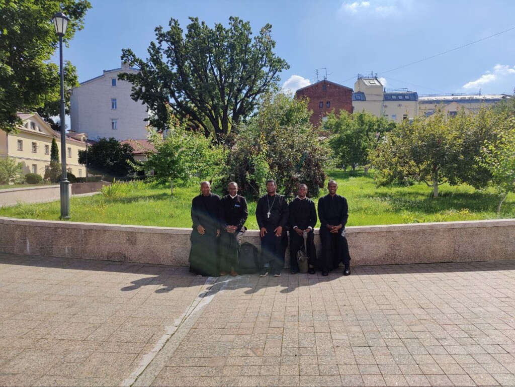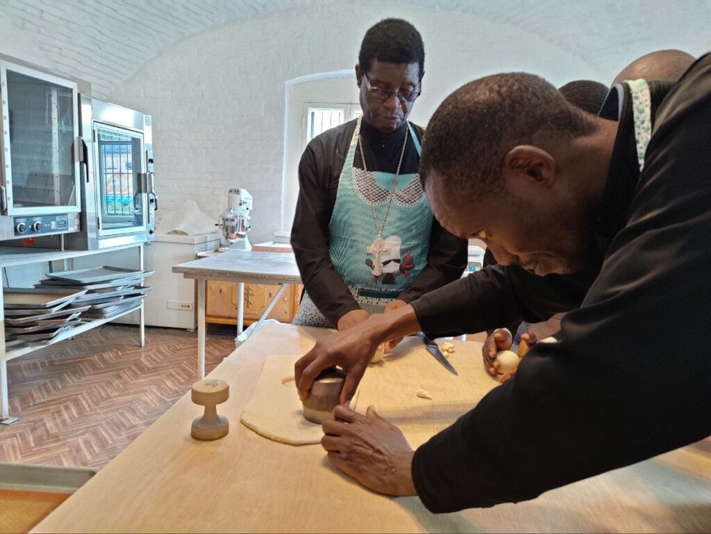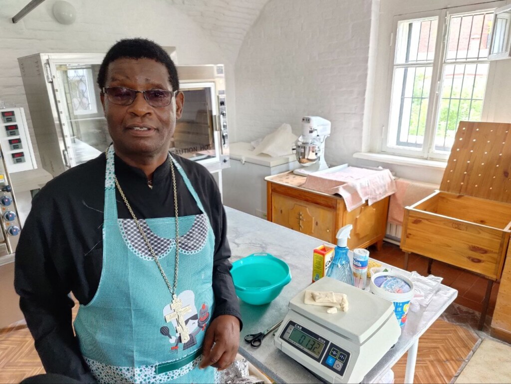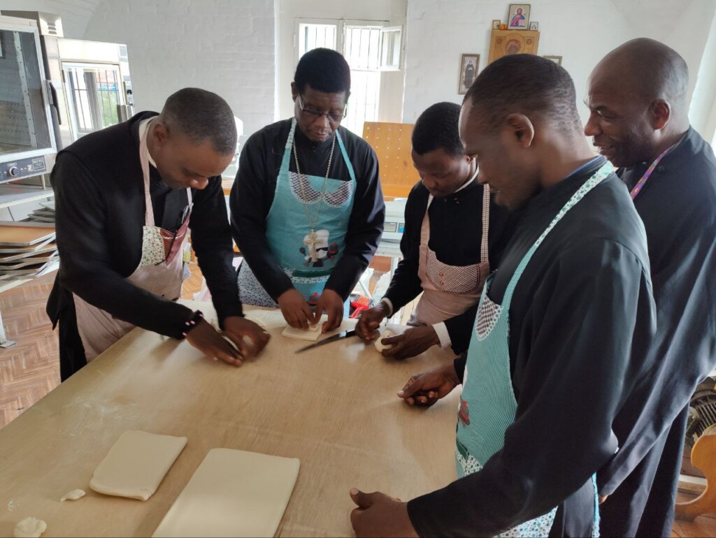 1 августа 2023 года, после Божественной Литургии, священнослужители и чтецы Патриаршего Экзархата Африки из Малави, Уганды и Кении - иерей Иоаким Бакали, диаконы Роберт Одеке и Афанасий Оком, чтецы Френсис Гатума и Георгий Окелло, проходящие в монастыре богослужебную практику, учились изготавливать и выпекать просфоры в монастырской просфорне. Наших гостей сопровождали студенты СПбДА чтецы Илья Брусиловский и Иоанн Леликов.