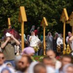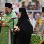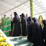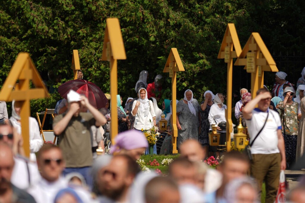 Собственно говоря, почему и мы все собрались здесь сегодня? Кто-то скажет: «Ну, обычай такой». Но обычаев много, а вот стоять на жаре под палящим солнцем — какой это обычай? Какой-нибудь циничный человек еще и пальцем у виска покрутит, мол, они там с ума посходили, наверняка на скорой увозят одного за другим. Но мы стоим. Почему? Да потому что благодать Божия с нами, сила Божия, которую чувствуем, которой питаемся, которая помогает нам жить.