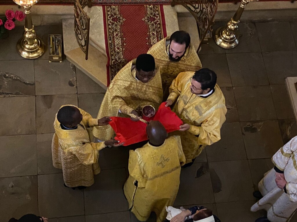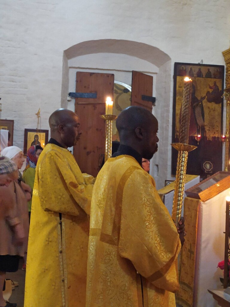 13 августа 2023 года, в Неделю 10-ю по Пятидесятнице и предпразднство Изнесения Честных Древ Животворящего Креста Господня, клирики Патриаршего Экзархата Африки иерей Иоаким Бакали (Малави) и диакон Афанасий Эрик Оком (Уганда) сослужили монастырскому духовенству за воскресной Божественной Литургией в нашей обители. В богослужении участвовали как алтарники иподиаконы Антоний (Читва) Уилсон и Николас (Френсис) Гатума из Кении, готовящиеся стать священнослужителями. В храме молились настоятельница нашего монастыря игумения Викторина (Перминова) с сестрами и наши прихожане.