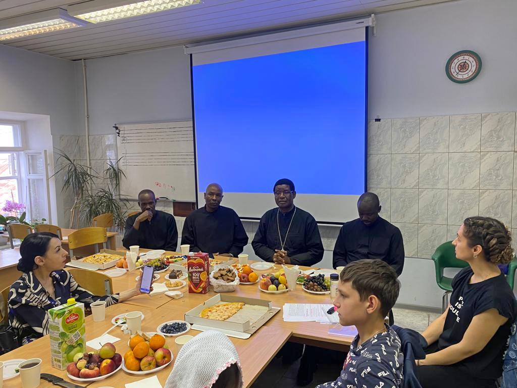13 августа 2023 года, после воскресного богослужения, наши дорогие гости из Африки иерей Иоаким Бакали (Малави), диакон Афанасий Эрик Оком (Уганда), иподиаконы Антоний (Читва) Уилсон и Николас (Френсис) Гатума (Кения) встретились с прихожанами обители в аудитории монастырских воскресных школ.