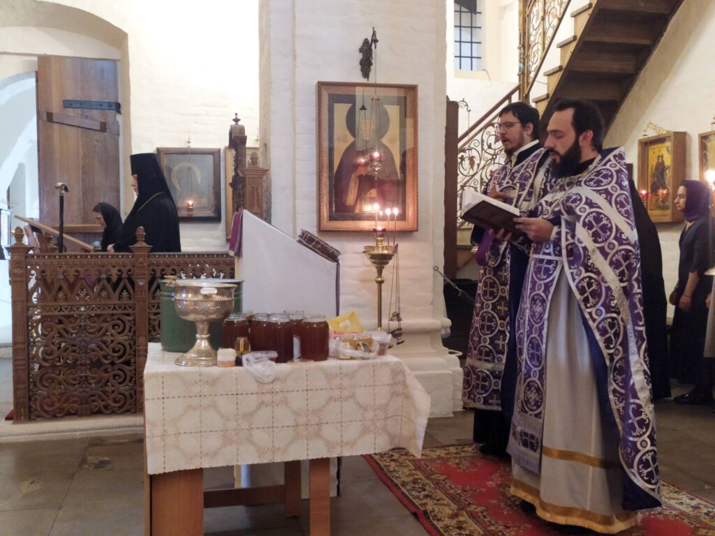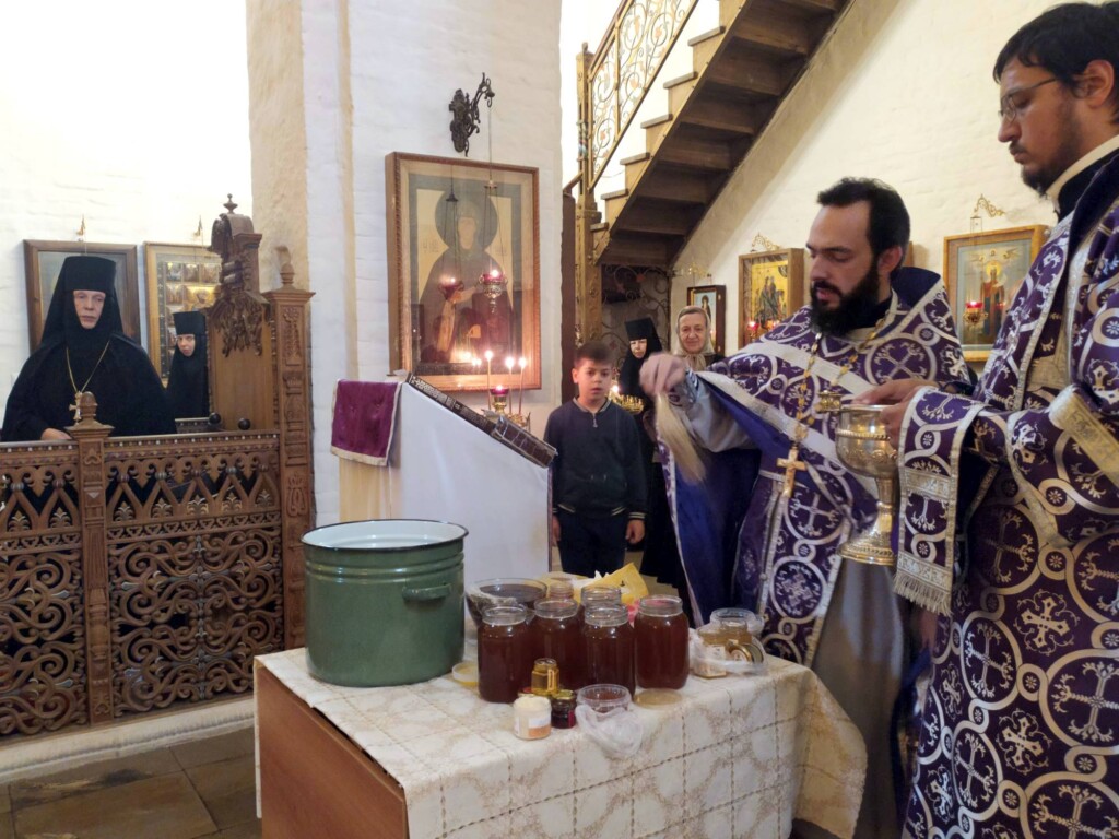 По завершении Божественной Литургии состоялся водосвятный молебен с освящением меда нового урожая.
