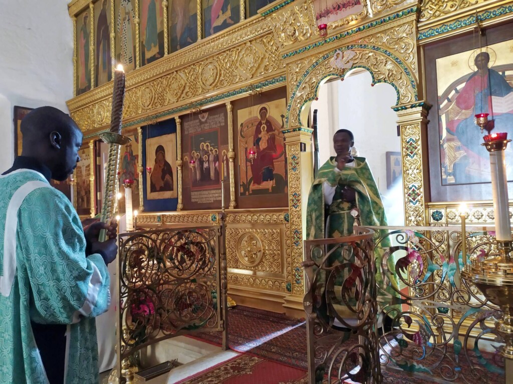 В светлые дни поста наши братья из Африки продолжают богослужебную практику в обители. 16 августа 2023 года, в день памяти преподобного Антония Римлянина, священнослужители Патриаршего Экзархата Африки иерей Иоаким Бакали (Малави), иерей Симеон Одеке (Уганда), диакон Афанасий Эрик Оком (Уганда), диакон Георгий Окелло (Кения) сослужили духовенству монастыря за Божественной Литургией. В богослужении также участвовал иподиакон Антоний (Читва) Уилсон (Кения).