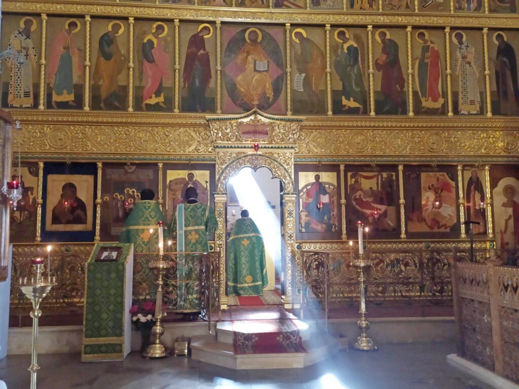 Чтения и пение за богослужением совершалось на нескольких языках, что каждый раз напоминает о Сионской горнице, и о том, что "языцы иногда размесишася дерзости ради столпотворения; языцы же ныне умудришася славы ради Боговедения". Эти слова из стихиры Дня Святой Пятидесятницы напоминают о том, что разделяет и что объединяет людей: разделяют противление воле Божией, богоборчество, страсти, а объединяют смиренное принятие и исполнение воли Божией, любовь во Христе, долготерпение, кротость и другие добродетели, что привлекает благодать Святого Духа.Человеку, стремящемуся к Богу в исполнении Его заповедей, даруется и Боговедение, Богопознание.