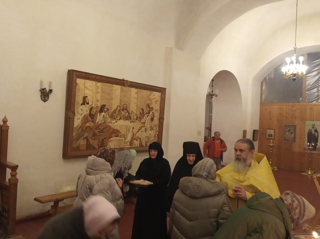 Вечером 18 декабря 2023 года, в канун престольного праздника - дня памяти святителя Николая, архиепископа Мир Ликийских, Чудотворца, на подворье нашей обители состоялось всенощное бдение, которое совершил священнослужитель монастыря протоиерей Серафим Хайруллин.