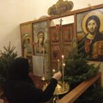 По завершении вечерни Рождества Христова, в центр храма была вынесена свеча, знаменующая собой Вифлеемскую звезду, перед которой было совершено славление празднику.