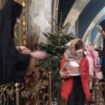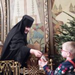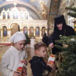Матушка Игумения вручила пришедшим на службу детям рождественские подарки.