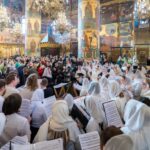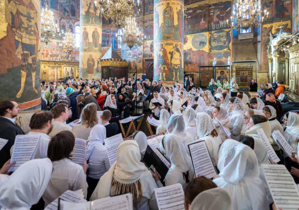 Богослужебные песнопения исполнил сводный хор отдела по делам молодежи г. Москвы «PrimaVera» под управлением Дины Канищевой.