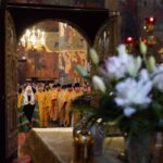 8 января 2024 года, в день попразднства Рождества Христова, праздник Собора Пресвятой Богородицы, день памяти праведного Иосифа Обручника, Давида царя и Иакова, брата Господня, Святейший Патриарх Московский и всея Руси Кирилл совершил Божественную литургию в Патриаршем Успенском соборе Московского Кремля.
