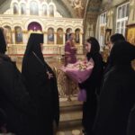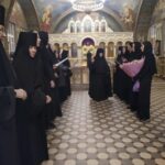 После поздравления, по традиции, Матушку торжественно сопроводили до игуменских келий с пением тропаря Рождеству Пресвятой Богородицы.