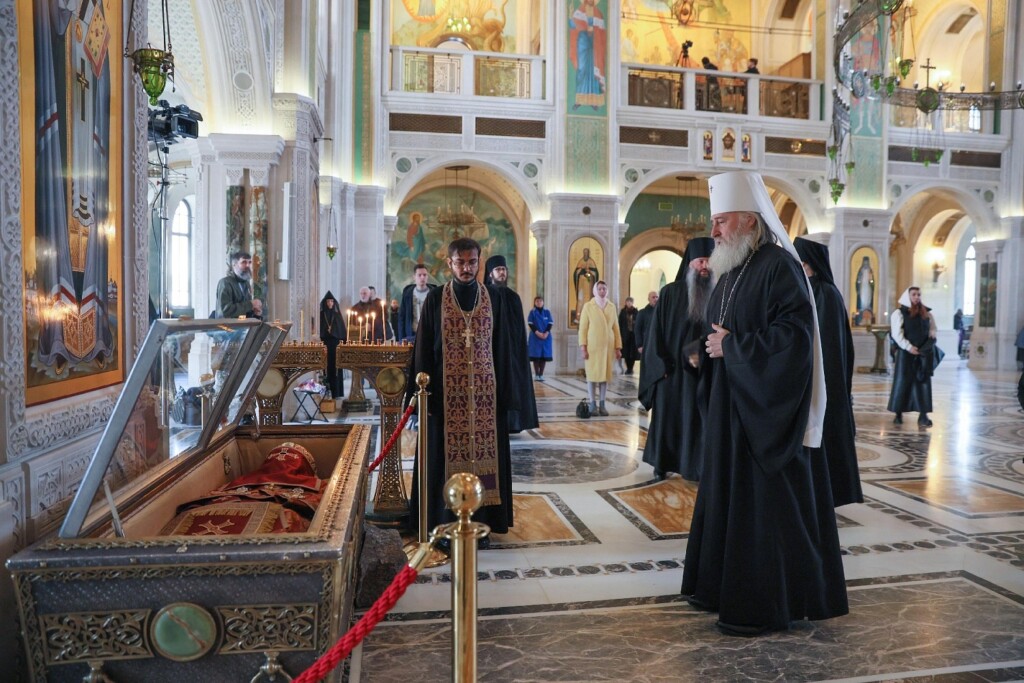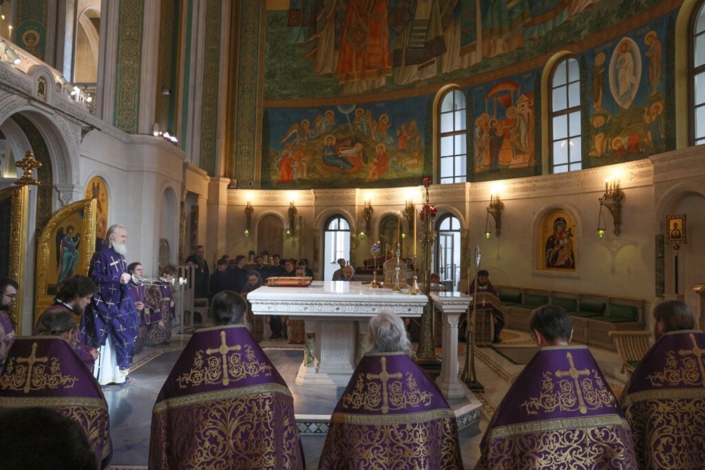 29 марта 2024 года председатель Синодального отдела по монастырям и монашеству митрополит Каширский Феогност, наместник Донского ставропигиального мужского монастыря, возглавил Литургию Преждеосвященных Даров в соборе Воскресения Христова и новомучеников и исповедников Церкви Русской Сретенского ставропигиального мужского монастыря г. Москвы.