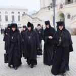 За богослужением молились заместитель председателя Синодального отдела по монастырям и монашеству, настоятельница Зачатьевского ставропигиального монастыря игумения Иулиания (Каледа), настоятельница нашего Богородице-Рождественского ставропигиального монастыря игумения Викторина (Перминова), члены Коллегии Синодального отдела по монастырям и монашеству.