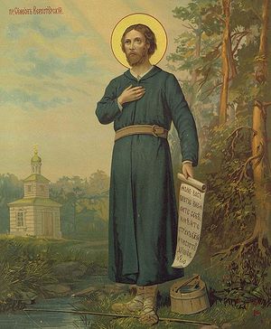 Вскоре Ганя исполнил своё обещание – вместе с другими паломниками он посетил Верхотурье, находившееся в 280 верстах от родной деревни. Здесь с ним произошло ещё одно необычное событие. Когда паломники уже собрались домой, Ганя вспомнил, что у него в кармане остались пятаки, которые он не успел раздать нуждающимся. Тогда перед ним предстал какой-то странник, похожий на преподобного Симеона, каким он явился мальчику во сне перед исцелением. Ганя отдал ему свои пятаки, но перед этим услышал от странника непонятные тогда для него слова: «Будешь монахом! Будешь схимником!» Только спустя много лет он понял, что слова эти были пророческими.