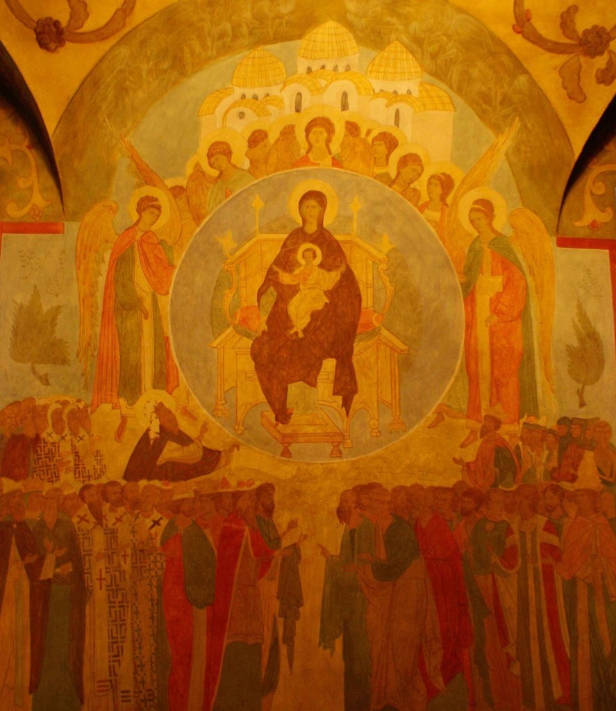 Богоматерь на престоле. Настенная роспись в приделе Сошествия Святого Духа. Богородице-Рождественский монастырь.