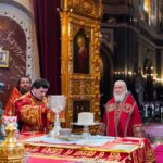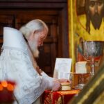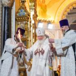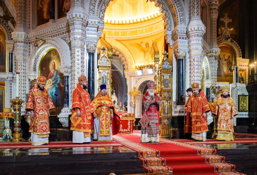 На сугубой ектении были вознесены особые прошения, Предстоятель Русской Церкви прочитал молитву о Святой Руси.