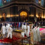 Богослужебные песнопения исполнили Патриарший хор Храма Христа Спасителя (регент — И.Б. Толкачев) и Камерный хор Храма Христа Спасителя (регент — С.С. Сидоренко).