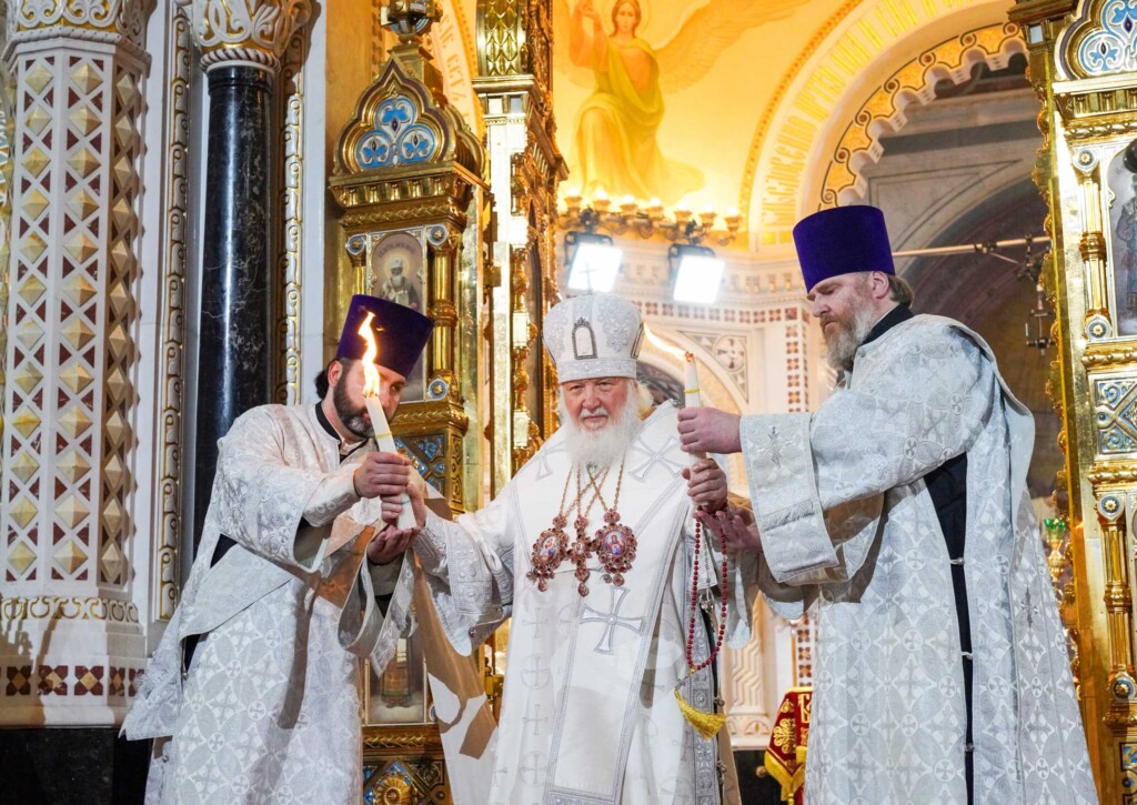 За Пасхальной заутреней Предстоятель Русской Церкви прочитал Слово огласительное святителя Иоанна Златоуста на Святую Пасху.