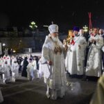 Перед началом богослужения Предстоятель Русской Православной Церкви в прямом эфире поздравил зрителей трансляции с праздником Светлого Христова Воскресения.