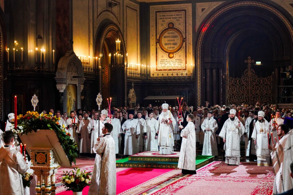 В ночь с 4 на 5 мая 2024 года в кафедральном соборном Храме Христа Спасителя в Москве Святейший Патриарх Московский и всея Руси Кирилл совершил Пасхальные богослужения — полунощницу, крестный ход, Пасхальную заутреню и Божественную литургию святителя Иоанна Златоуста.