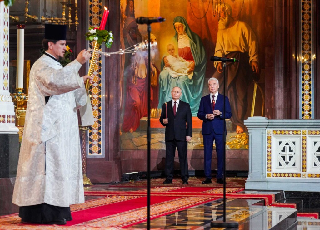 Пасхальное богослужение в Храме Христа Спасителя посетили Президент Российской Федерации В.В. Путин и мэр г. Москвы С.С. Собянин.