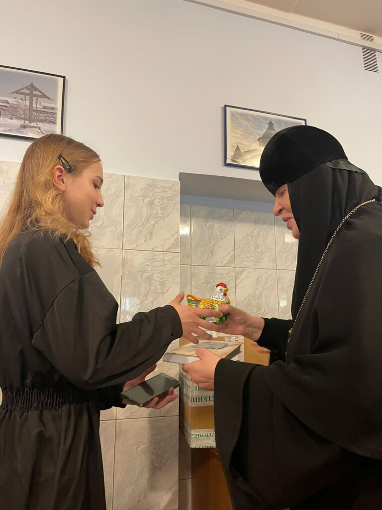 В завершение, Матушка Игумения раздала детям пасхальные подарки.