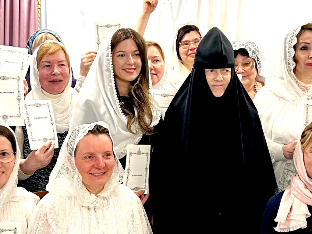Выпускницы сердечно поблагодарили Матушку Игумению за возможность обучения при монастыре и за то, что годы учебы были для них не только временем получения знаний и богослужебной практики, но и возможностью приблизиться к Богу, открыть для себя много нового в духовной жизни.