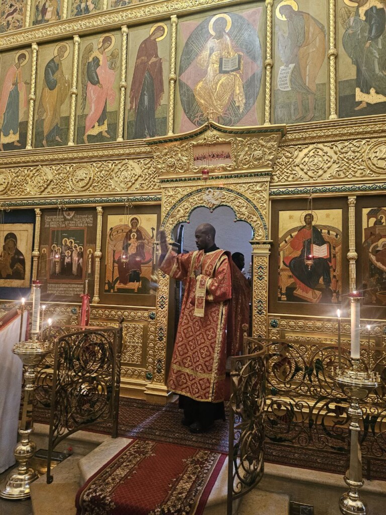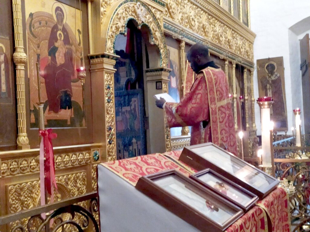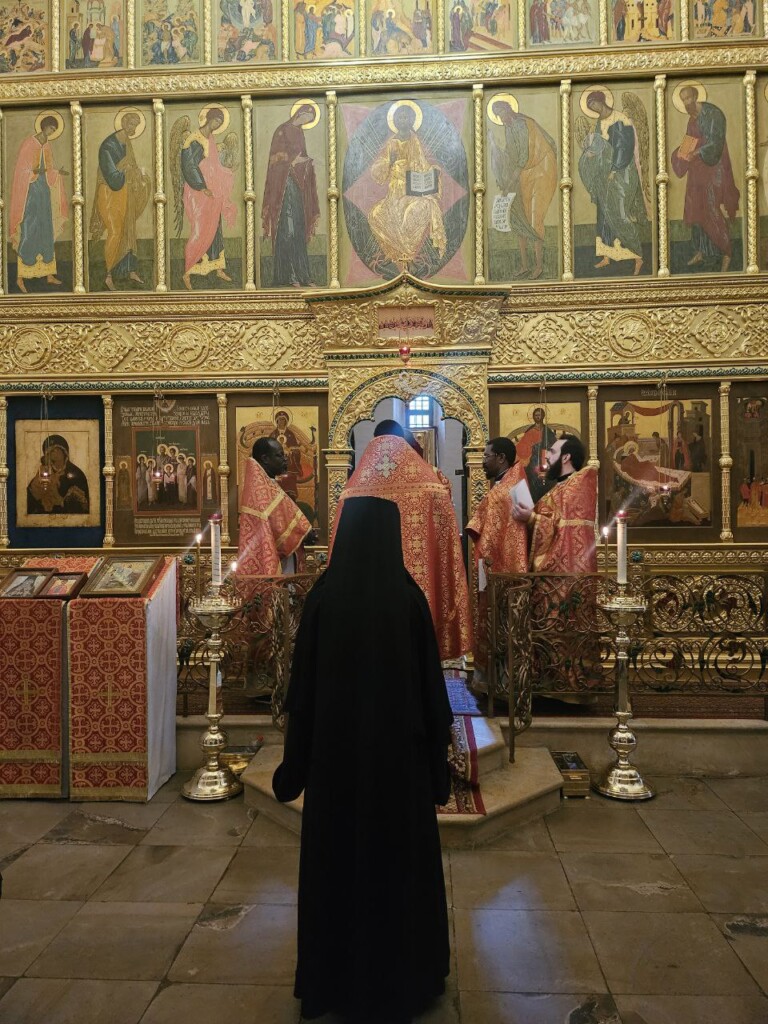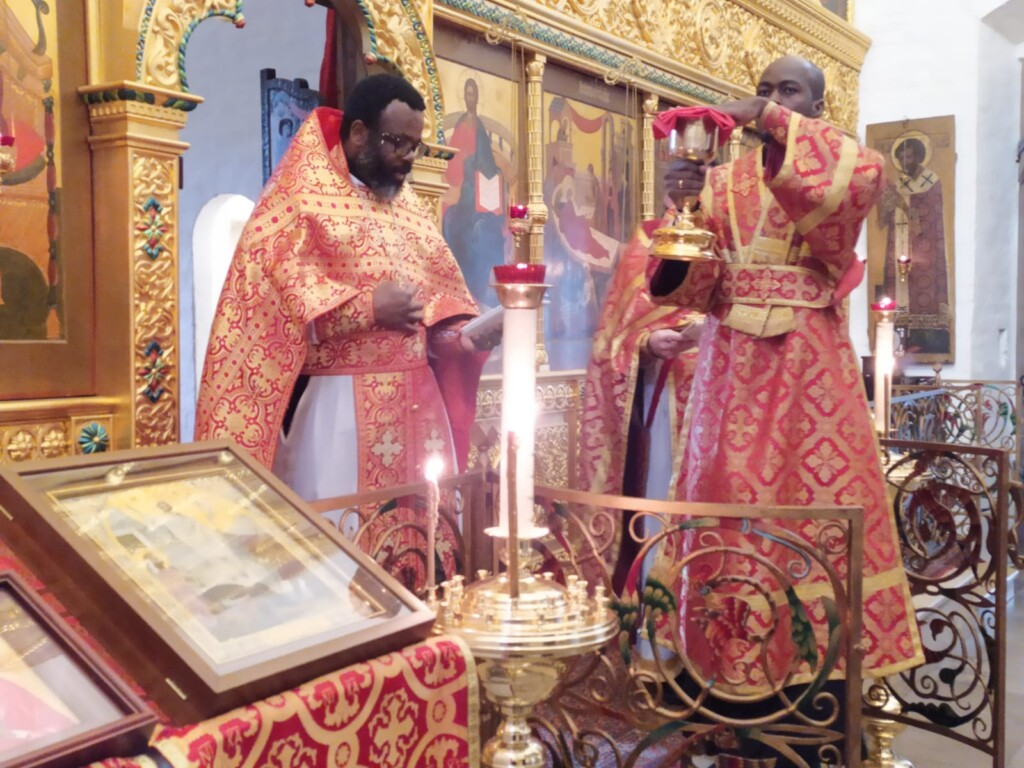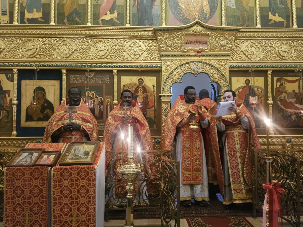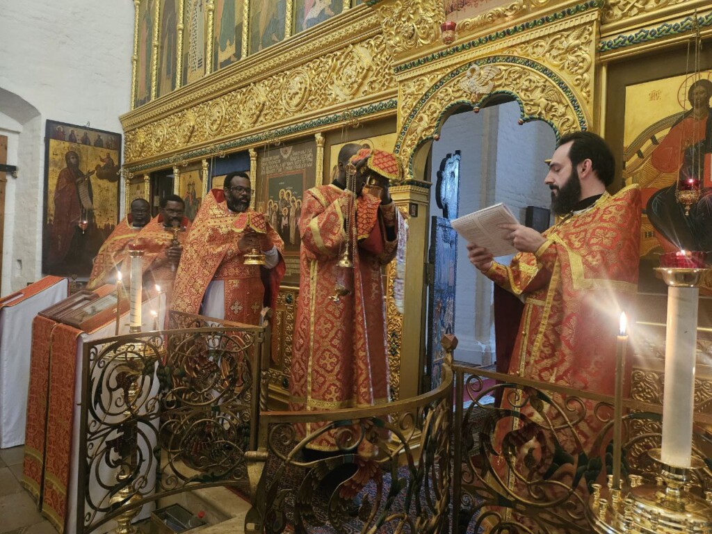 13 мая 2024 года, в понедельник 2-й седмицы по Пасхе, день памяти св. апостола Иакова Зеведеева и святителя Игнатия (Брянчанинова), епископа Кавказского, священнослужители Патриаршего Экзархата Африки совершили Божественную Литургию в нашей обители. Иерей Даниил Бру (Кот д'Ивуар), иерей Савва Родриг (ЦАР), иерей Афанасий Эбелебель (Габон), иерей Стефан Ассонгба (Бенин), диакон Лука Жерар (Буркина-Фасо), которым священнослужители монастыря помогают пройти богослужебную практику, служили вместе с духовенством обители в начале второй недели пасхального периода.