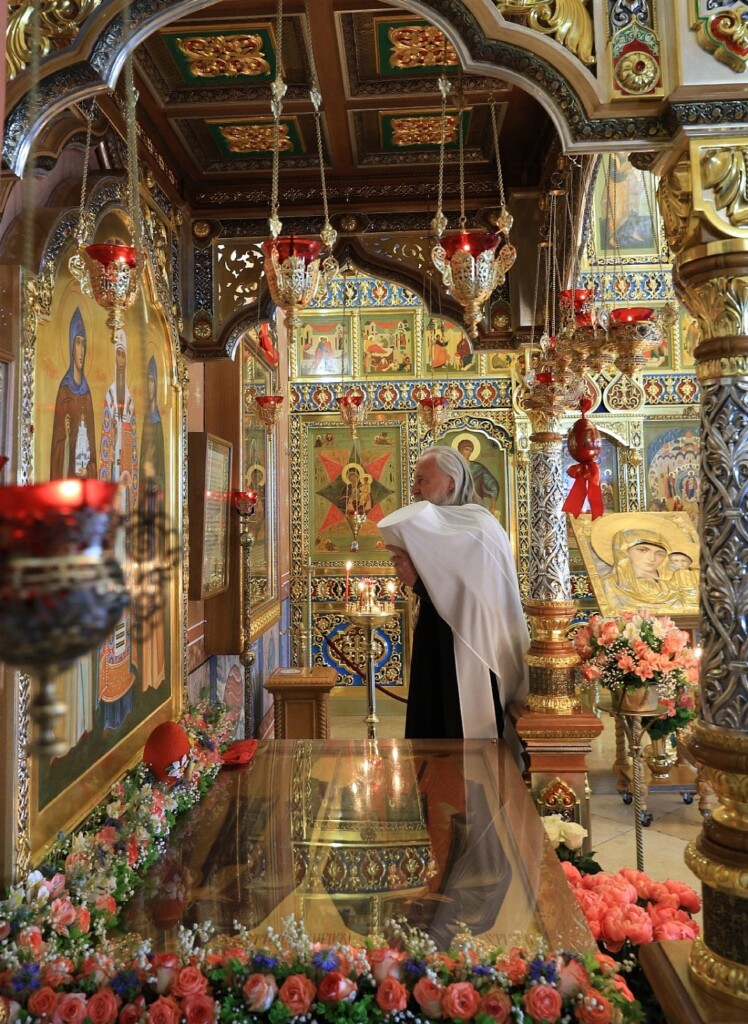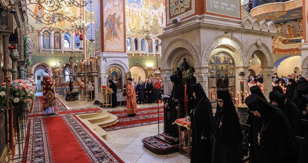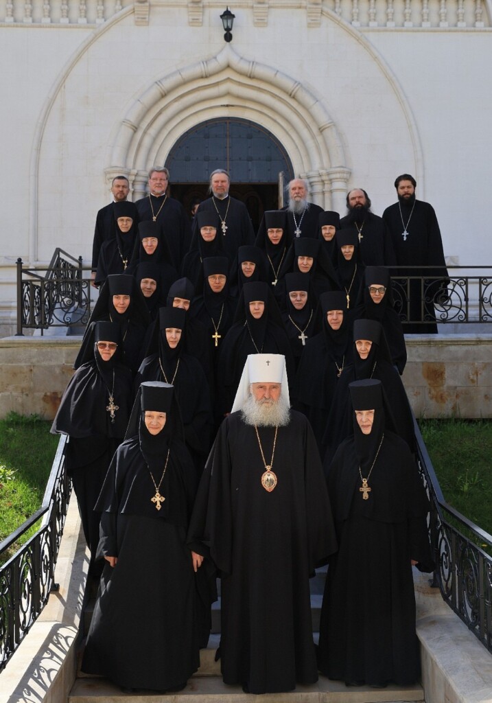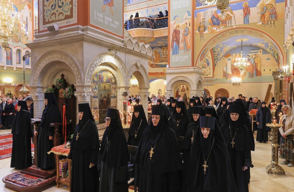 За Литургией молились: заместитель председателя Синодального отдела по монастырям и монашеству, настоятельница Зачатьевского ставропигиального монастыря игумения Иулиания (Каледа); настоятельница нашего Богородице-Рождественского ставропигиального монастыря игумения Викторина (Перминова); настоятельница Марфо-Мариинской обители милосердия игумения Елисавета (Позднякова); настоятельница Иоанно-Предтеченского ставропигиального монастыря игумения Елисавета (Никишкина); настоятельница Троице-Одигитриевского ставропигиального монастыря Зосимова пустынь игумения Фаина (Кулешова); настоятельница Свято-Троицкого Александро-Невского ставропигиального монастыря с. Акатова игумения Антония (Минина); настоятельница Никольского Шостьенского ставропигиального монастыря игумения Неонилла (Фролова); настоятельница Никитского монастыря г. Каширы Московской области игумения Магдалина (Чекулаева); настоятельница Серпуховского Введенского Владычнего монастыря игумения Алексия (Петрова); настоятельница Свято-Троицкого Белопесоцкого монастыря игумения Агния (Сударикова); настоятельница Никитского монастыря в д. Бывалино игумения Капитолина (Филиппенко); настоятельница женского монастыря во имя мученика Феодора Стратилата г. Переславля-Залесского Ярославской области игумения Даниила (Севериненко); настоятельница Свято-Варсонофиевского монастыря с. Покровские Селищи Республики Мордовия игумения Леонида (Куликова); настоятельница Свято-Екатерининского женского монастыря в Твери игумения Иулиания (Ритониеми); настоятельница Вознесенского Оршина монастыря п. Орша Тверской области игумения Евпраксия (Инбер); настоятельница Троице-Георгиевского монастыря в с. Лесном Краснодарского края игумения Дросида (Сорокопуд); настоятельница Пермского Успенского монастыря игумения Мария (Яковлева); настоятельница Авраамиева Богоявленского монастыря г. Ростова Великого игумения Авраамия (Сорокина); настоятельница Биробиджанского монастыря во имя святителя Иннокентия, митрополита Московского в с. Раздольное игумения Анастасия (Иванченко); настоятельница Свято-Троицкого Никандрова монастыря игумения Варвара (Колосова); настоятельница женского монастыря в честь блаженной Ксении Петербургской в д. Барань Минской области Республики Беларусь игумения Евпраксия (Зубова); прихожане и гости монастыря.