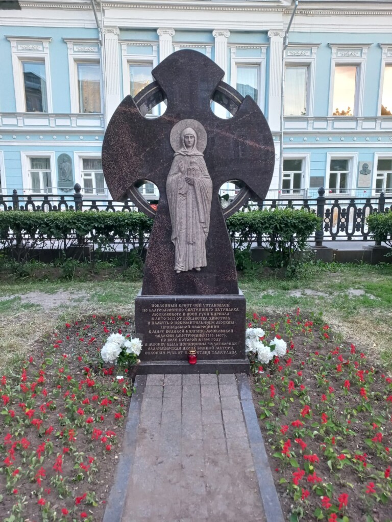 Торжественная церемония открытия поклонного креста преподобной Евфросинии (Евдокии), великой княгини Московской, состоялась 3 декабря 2012 года на Рождественском бульваре. Это событие глубоко промыслительно. Супруга благоверного князя Димитрия Донского святая Евдокия (в монашестве Евфросиния) помогала становлению нашего монастыря как материально, так и духовно. Ее помощь была настолько значимой, что историки причисляют преподобную Евфросинию к основательницам нашей обители.